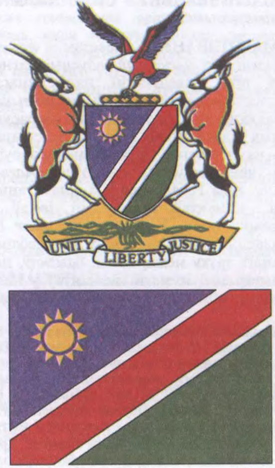 Герб і сцяг Намібіі.