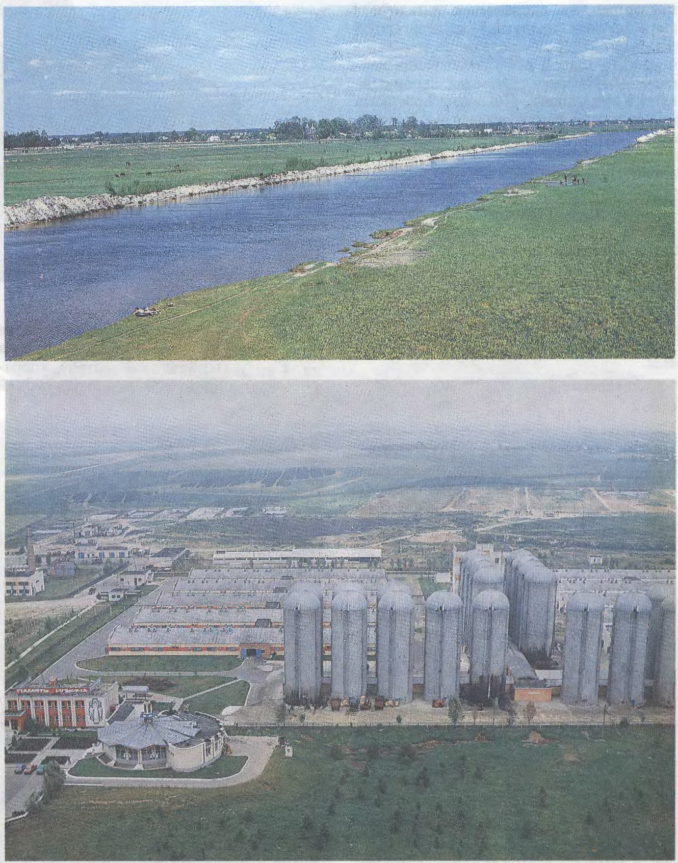 Да арт.Брэсцкая вобласць. Участак Дняпроўска-Бугскага канала ў Брэсцкім Палессі (уверсе). Жывёлагадоўчы комплекс у Брэсцкім раёне.