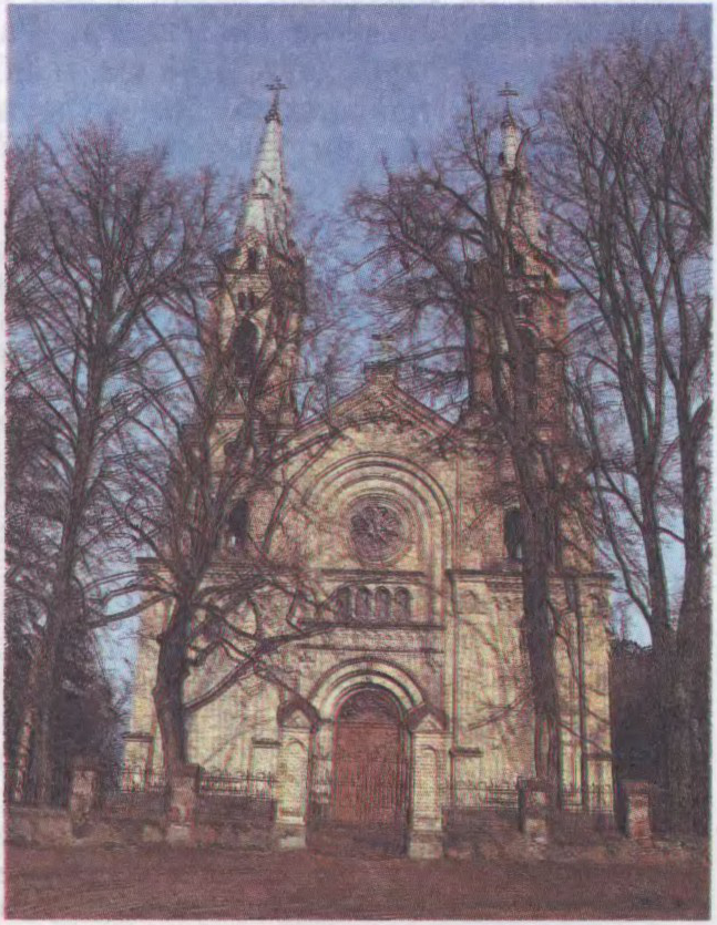 помнік архітэктуры неаготыкі. Пабудаваны ў 1900—05 у в. Белагруда (Лідскі р-н Гродзенскай вобл.), на высокім беразе р. Дзітва. 3-нефавая 2-вежавая базіліка з трансептам і 5-граннай апсідай з бакавымі сакрысціямі. Сіметрыя гал. фасада вылучана высокім арачным парталам уваходу, галерэяй і акном-ружай над ім. З цэглы вымураваны лапаткі, аркатурныя фрызы, ліштвы, профілі і раскрапоўкі. Аркі і люнеты ў інтэр’еры ўпрыгожаны фрэскавай арнаментальнай размалёўкай. У завяршэнні нефа манументальны на высокім цокалі 2-ярусны шматкалонны алтар у стылі неакласіцызму, над уваходам хоры.