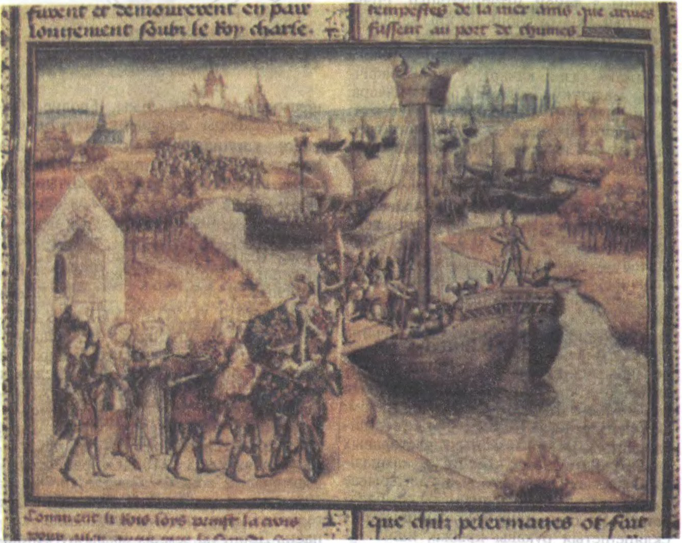 Да арт Крыжовыя паходы. Адбыццё войска Людовіка IX у восьмы крыжовы паход у 1270. Мініяцюра невядомага майстра 15 ст. з «Вялікіх французскіх хронік».