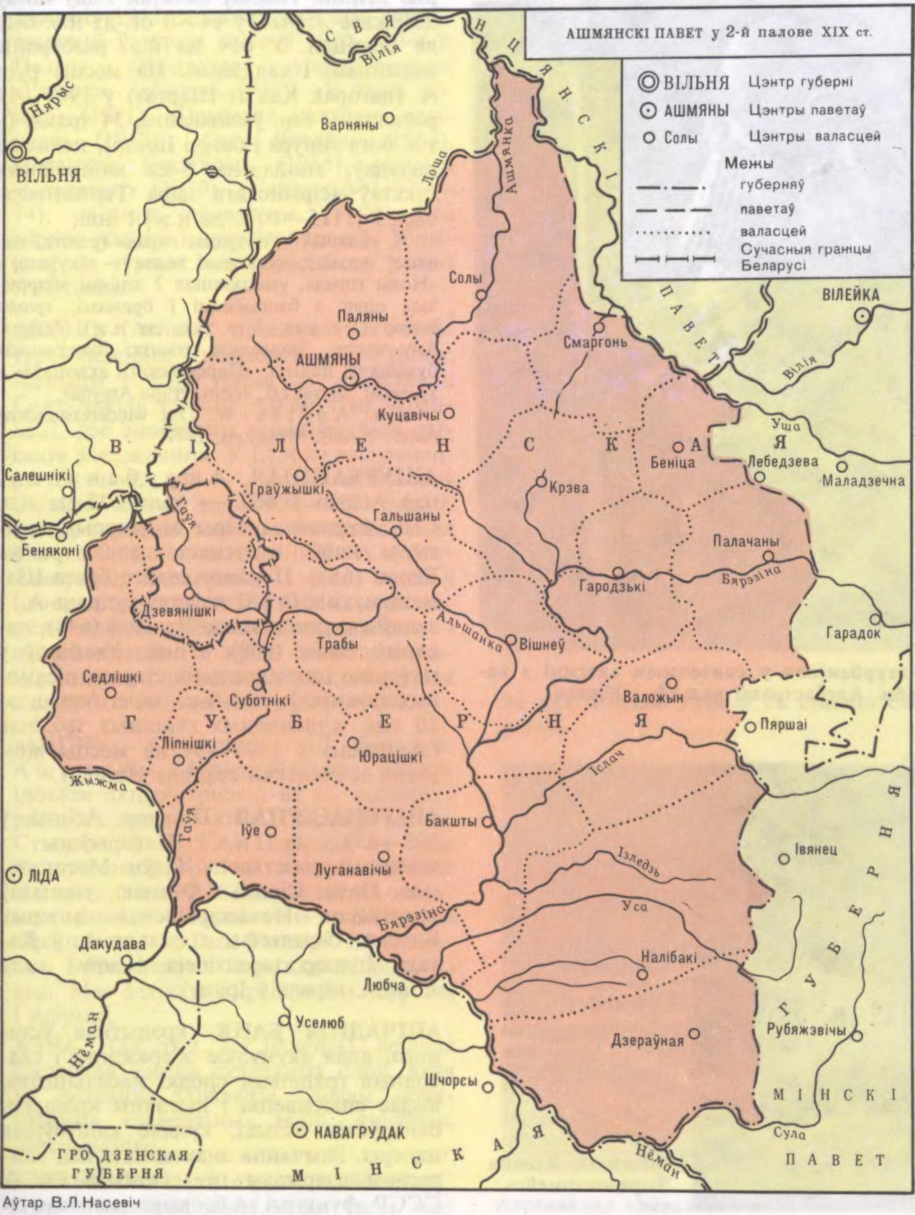 адм.-тэр. адзінка на Беларусі ў 16—20 ст. Цэнтр — г. Ашмяны. У часы ВКЛ у складзе Віленскага ваяводства. У 16—17 ст. неаднаразова быў тэатрам ваен. дзеянняў. Земскія і гродскія суды Ашмянскага павета знаходзіліся ў Ашмянах і Мядзеле, з 1775 — у Ашмянах і Паставах. У 1791 падзелены на Ашмянски павет (з цэнтрам у Ашмянах) і Завілейскі пав. (з цэнтрам у Паставах). У выніку 2-га падзелу Рэчы Паспалітай у 1793 усх. частка павета адышла да Рас. імперыі. З 1795 Ашмянскі павет у Віленскай губ. Складаўся з 7 валасцей (праўленні ў Ашмянах, Бакштах, Дзевянішках, Крэве, Лошы, Смаргоні, Трабах), у канцы 19 — пач. 20 ст. з 23 валасцей, тэр. 6196,5 кв. вёрст, нас. 233 559 чал. З кастр. 1920 Ашмянскі павет у складзе Сярэдняй Літвы, з сак. 1922 да вер. 1939 у Віленскім ваяв. Польшчы. У 1931 тэр. 2352 км², нас. 101 542 чал. У 1940 на яго тэр. ўтвораны Ашмянскі, Астравецкі і Смаргонскі р-ны БССР.