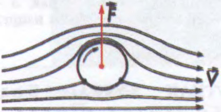 Напр., пры абцяканні бясконца доўгага кругавога цыліндра, які верціцца, безвіхравым патокам, накіраваным перпендыкулярна да яго ўтваральных, з прычыны вязкасці вадкасці скорасць цячэння з таго боку, дае напрамкі скарасцей патоку і вярчэння цыліндра супадаюць, павялічваецца, а дзе яны процілеглыя — памяншаецца. У выніку ціск на адным баку памяншаецца, а на другім павялічваецца, што прыводзіць да ўзнікнення папярочнай сілы. Аналагічная сіла ўзнікае і пры абцяканні патокам паветра шара, які верціцца, чым тлумачыцца непрамалінейны палёт закручанага тэніснага ці футбольнага мяча.