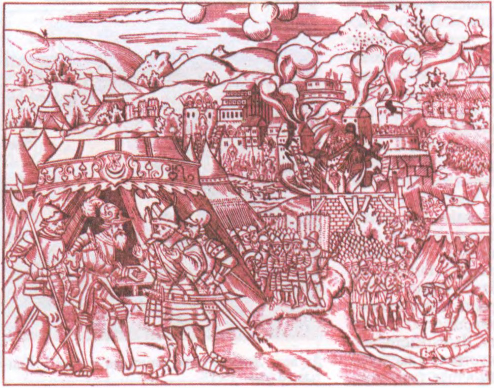 Да арт. Лівонская вайна 1558—83. Узяцце Полацка войскам Стафана Баторыя. Гравюра 16 ст.