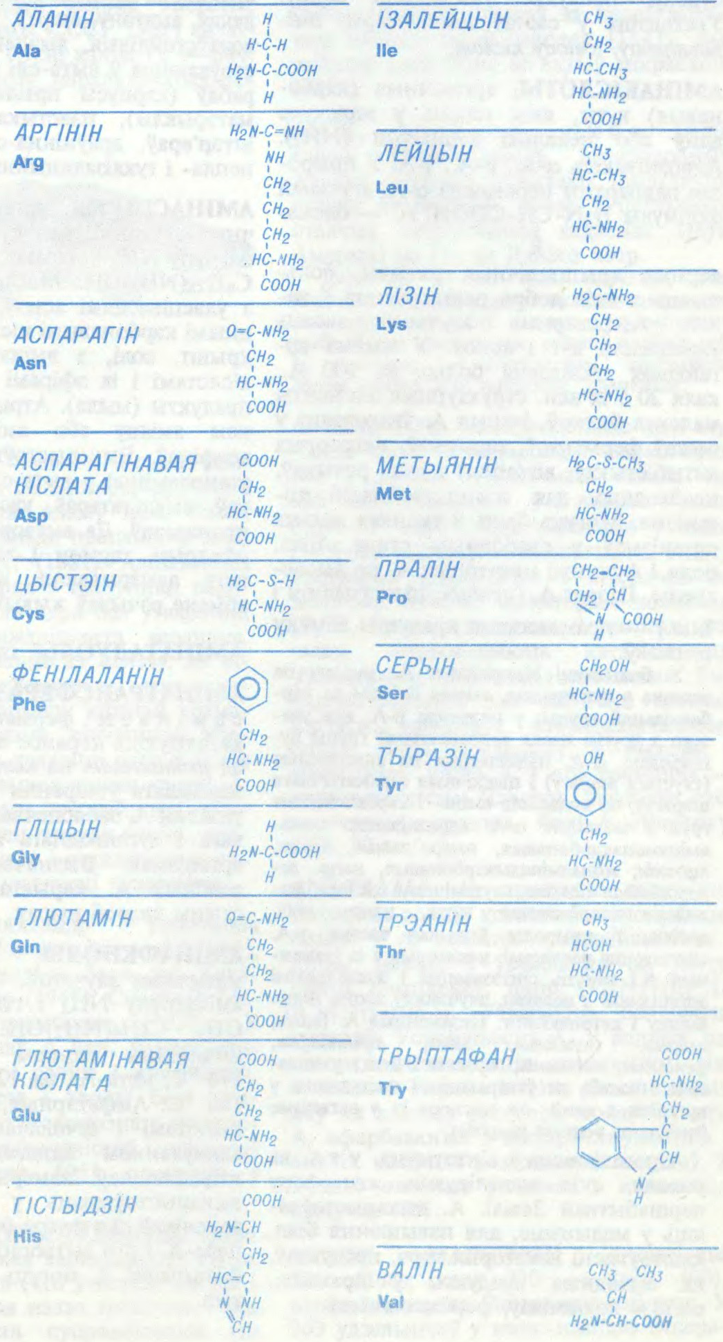 У большасці прыродных амінакіслот амінагрупа звязана з вугляродам, самым блізкім да карбаксільнай групы; у малекуле β-амінакіслот яна звязана з другім пасля карбаксільнай групы вугляродам. α-амінакіслата падзяляецца на ацыклічныя (тлустага шэрагу) і цыклічныя (араматычнага шэрагу); па колькасці аміна- і карбаксільных груп у малекуле α-амінакіслот адрозніваюць монаамінамонакарбонавыя, напр.гліцын, серын, трэанін; монаамінадыкарбонавыя, напр.аспарагінавая кіслата, глутамінавая кіслата; дыамінамонакарбонавыя к-ты, напр.лізін, аргінін. У прыродзе большая частка α-амінакіслот сінтэзуецца раслінамі, некаторыя з іх (заменныя амінакіслоты) могуць сінтэзавацца і жывёльнымі арганізмамі з неарган. злучэнняў азоту, напр. аміяку і кетонакіслот. Незаменныя амінакіслоты (валін, лейцын, ізалейцын, лізін, трыптафан, феніланін, метыянін, трэанін і інш.) у чалавека і жывёл не ўтвараюцца і паступаюць у арганізм з ежай. Ад нястачы іх у арганізме ўзнікаюць розныя хваробы.