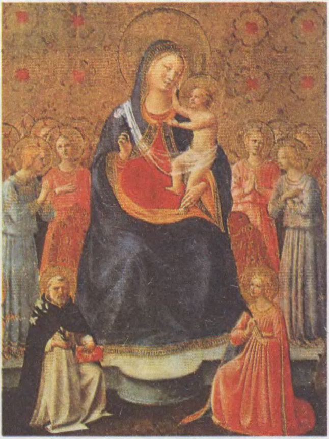 Фра Анджэліка. Мадонна на троне паміж святымі Кацярынай і Даменікам. 1445.
