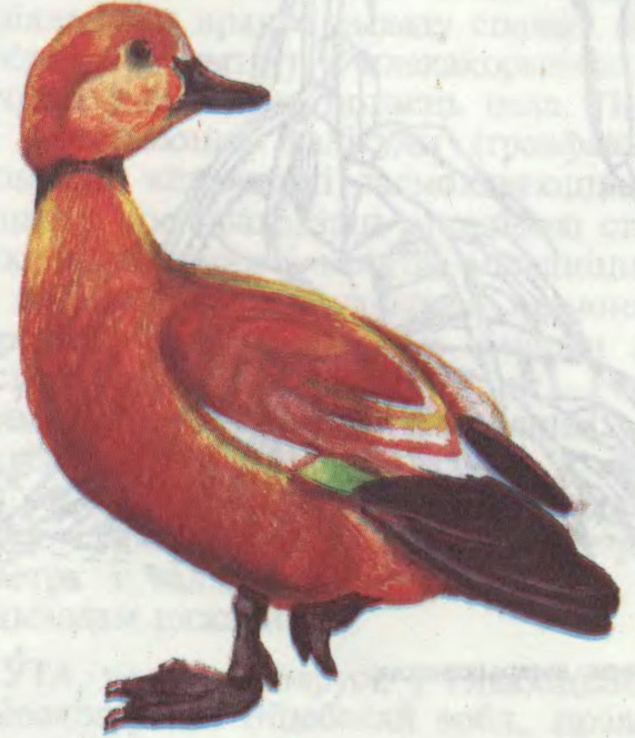 Даўж. цела каля 60 см, маса 1—1,6 кг. Самкі меншыя за самцоў. Жыве парамі. Гнёзды ў глыбокіх норах стэпавых звяркоў, нішах абрываў, пакінутых будынках. Самка нясе 8—12 яец, наседжвае іх. Птушаняты растуць і ў няволі. Корміцца раслінамі і воднымі беспазваночнымі.