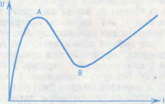 Вольтамперная характарыстыка элемента з адмоўным супраціўленнем. AB — спадальны ўчастак.