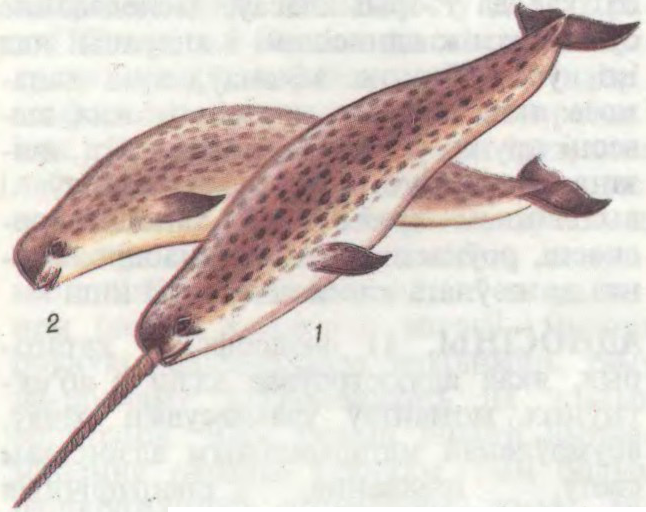 Даўж. да 6,1 м, маса 1—1,5 т. Афарбоўка светлая з мноствам чорных плямаў (дзіцяняты цёмныя). У самцоў (зрэдку ў самак) у левай верхняй сківіцы бівень (рог) даўж. да 3 м (адсюль назва), якім яны прабіваюць аддушыны ў ільдах. Корміцца галаваногімі малюскамі і рыбай. Рэдкі. Ахоўваецца, занесены ў Чырв. кнігу СССР.