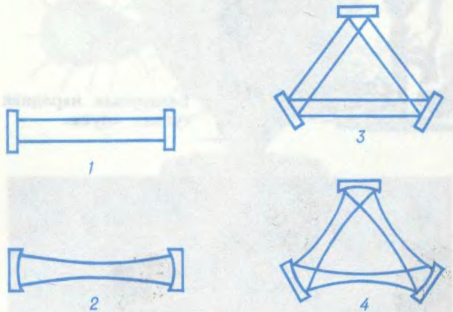 Прасцейшы аптычны рэзанатар — інтэрферометр Фабры—Перо, які складаецца з 2 плоскіх строга паралельных люстэркаў, што знаходзяцца на адлегласці L, значна большай за даўжыню хвалі λ. Калі паміж люстэркамі ўздоўж восі рэзанатара распаўсюджваецца плоская светлавая хваля, то ў выніку адбіцця ад люстэркаў і інтэрферэнцыі адбітых хваляў утвараецца стаячая хваля. Умова рэзанансу: L = q∙λ/2. дзе q — падоўжны індэкс ваганняў (колькасць паўхваляў, што ўкладаюцца ўздоўж восі аптычнага рэзанатара). У лазернай тэхніцы выкарыстоўваюцца канфакальныя рэзанатары, утвораныя сферычнымі люстэркамі, якія разнесены на адлегласць, роўную радыусу іх крывізны, а таксама кальцавыя аптычныя рэзанатары, што складаюцца з 3 і болей плоскіх або сферычных люстэркаў. У аптычным рэзанатары са сферычнымі люстэркамі ўзбуджаюцца таксама незалежныя бягучыя насустрач адна адной хвалі.