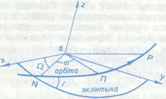 Эліптычная арбіта планеты P у прасторы: S — Сонца; П — перыгелій; N — узыходны вузел. Вось SX накіравана ў пункт веснавога раўнадзенства.