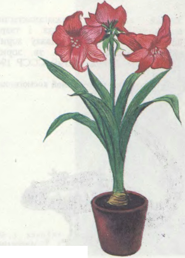 Шматгадовая травяністая расліна з буйнымі грушападобнымі цыбулінамі. Лісце скурыстае, бліскучае, рэменепадобнае. Кветкі буйныя (да 26 см у дыям.), лейкападобныя, духмяныя, сабраныя па 2—12 на канцы доўгага (да 70 см) кветканоса ў парасонік; розных колераў (белыя, чырвоныя, ружовыя, аранжавыя, крэмавыя, іншы раз стракатыя, са штрыхамі і плямамі). Цвіце зімою, ранняй вясною. Плод — каробачка з буйным чорным насеннем. Размнажаецца цыбулінамі-дзеткамі. Святлалюбны.