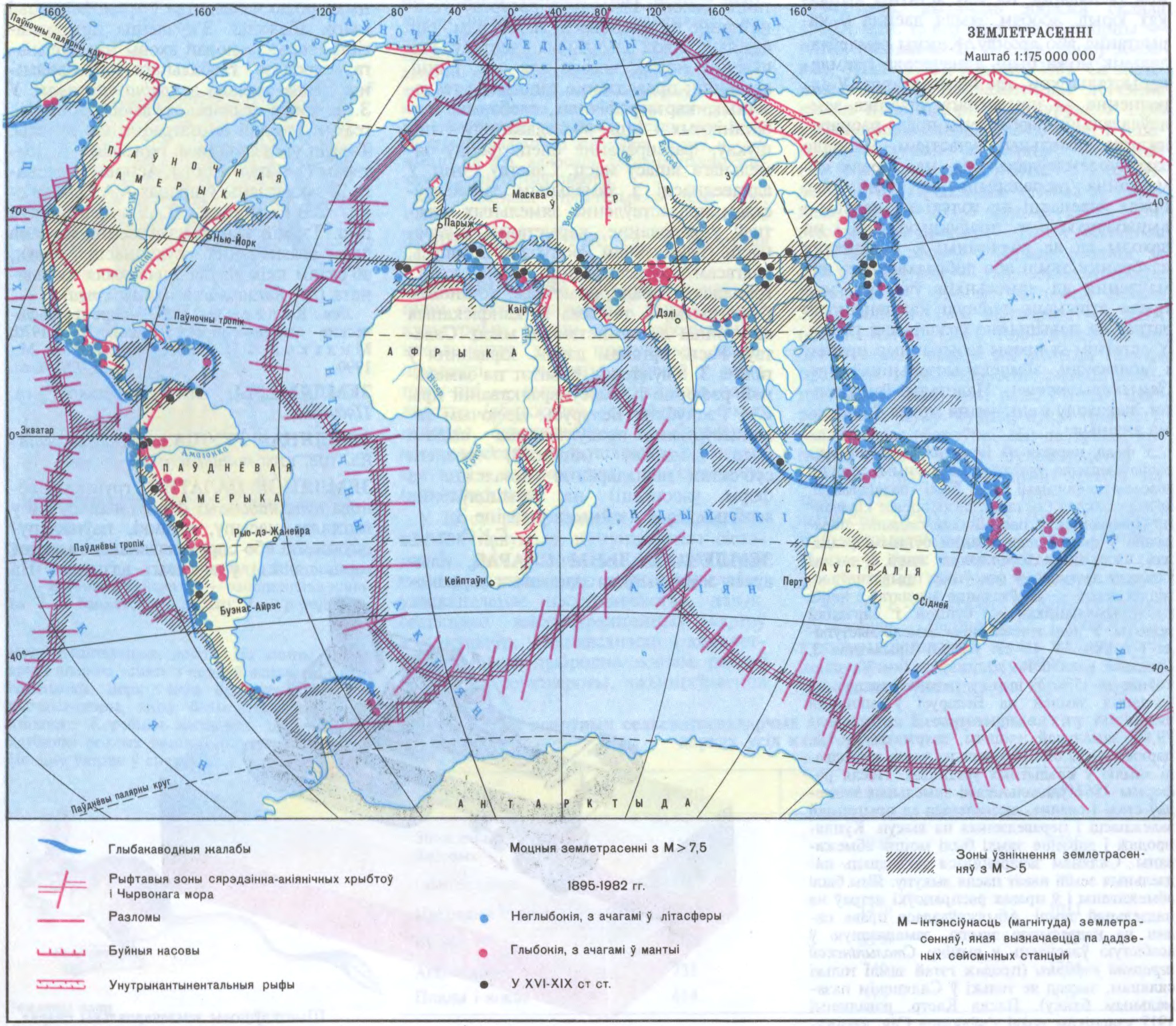 падземныя штуршкі і ваганні зямной паверхні, выкліканыя пераважна тэктанічнымі працэсамі, хуткімі зрухамі і разрывамі ў зямной кары ці верхняй