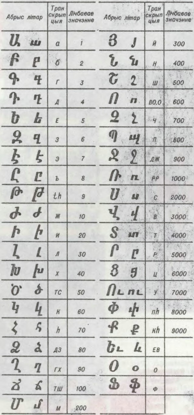 алфавітная сістэма, створаная каля 406 арм. епіскапам Месропам Маштоцам. Узнікненне армянскага пісьма было выклікана распаўсюджаннем хрысціянства (прынята армянамі ў 301) і неабходнасцю мець богаслужэбную л-ру на арм. мове. Армянскае пісьмо мае фанематычны характар. Першапачаткова алфавіт складаўся з 36 знакаў (кожны абазначаў асобную фанему), у 12 ст. дапоўнена 2 новымі літарамі. У такім складзе выкарыстоўваецца для перадачы сучаснай арм. мовы. Да пераходу на арабскія лічбы літары мелі і лічбавае значэнне. Кірунак пісьма злева направа, літарныя знакі запісваліся асобна. У якасці вытокаў армянскага пісьма разглядаецца грэч.-візантыйскае, сірыйскае і арамейскае пісьмо, аднак адназначнага рашэння гэтае спрэчнае пытанне не знайшло.