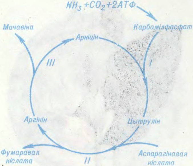 цыклічны ферментатыўны працэс утварэння мачавіны з вуглякіслага газу, аміяку і аспарагінавай к-ты ў арганізме чалавека, некаторых пазваночных жывёл, раслін і мікраарганізмаў. Асн. рэакцыі арніцінавага цыкла ў млекакормячых вывучаны англ. біяхімікамі Х.Крэбсам і К.Хензелейтам (1932 і інш.), адсюль другая назва. Спачатку да арніціну далучаецца карбамілфасфат (макраэргічны прадукт кандэнсацыі аміяку і вуглякіслага газу) з утварэннем цытруліну, да якога затым далучаецца амінагрупа аспарагінавай к-ты, з утварэннем аргініну. Апошні гідралітычна распадаецца на мачавіну і арніцін, які зноў уключаецца ў цыкл ператварэнняў. На біясінтэз адной малекулы мачавіны ў цыкле расходуюцца 2 малекулы АТФ. Біял. значэнне арніцінавага цыкла заключаецца ў вывядзенні з арганізма таксічнага для тканак аміяку.