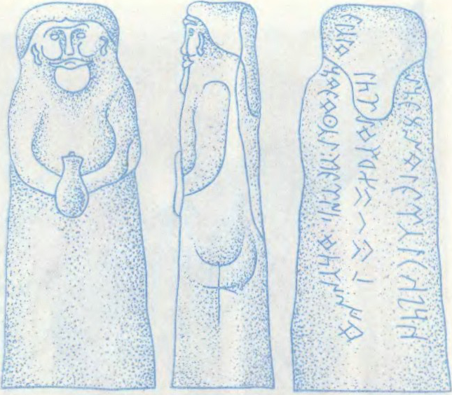 Да арт. Архона-енісейскія надпісы. Мужчынская надмагільная статуя з рунічным надпісам 10 ст.