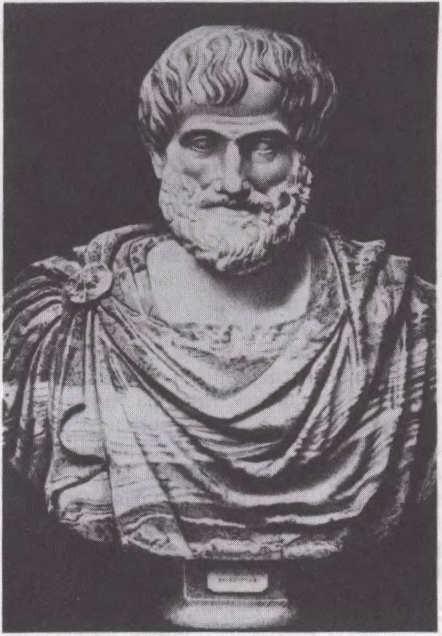 старажытнагрэчаскі філосаф і вучоны-энцыклапедыст. Вучань Платона. У 367—347 удзельнік Акадэміі платонаўскай. З 343 пры двары македонскага цара Філіпа, выхавальнік Аляксандра Македонскага. У 335 стварыў у Афінах філасофскую школу Лікей. У 323 быў абвінавачаны ў злачынстве супраць рэлігіі, пакінуў Афіны. У сваёй навуковай дзейнасці Арыстоцель ахапіў і сістэматызаваў практычна ўсе існуючыя ў антычнасці галіны ведаў. Галоўныя творы Арыстоцеля: «Катэгорыі», «Аналітыкі» 1-я і 2-я, «Метафізіка», «Фізіка», «Гісторыя жывёл», «Пра душу», «Нікамахава этыка», «Палітыка», «Рыторыка», «Паэтыка». У сваёй філасофіі крытыкаваў вучэнне Платона пра ідэі. У аснове быцця бачыў 4 пачаткі: форму, матэрыю, крыніцу руху і мэту. Паводле Арыстоцеля, форма як прынцып рэчы ператварае матэрыю як чыстую магчымасць рэчы ў рэальны, канкрэтны прадмет. Першарухавіком свету і вышэйшай мэтай яго развіцця лічыў Бога. Погляды Арыстоцеля мелі аб’ектыўна-ідэалістычны характар. Працэс пазнання разумеў як рух адчуванняў да універсалій, паколькі «ўсякія навуковыя веды ёсць веды пра агульнае». У касмалогіі стаяў на пазіцыях геацэнтрызму, прызнаваў мэтазгоднасць у жывой прыродзе, апісаў шматлікія віды жывёл. Як палітык быў выразнікам поліснай ідэалогіі: мэта дзяржавы — забеспячэнне шчаслівага жыцця грамадзян, выхаванне ў іх дабрачыннасці. «Добрымі» формамі ўлады лічыў арыстакратыю, манархію, «палітыю» (памяркоўная дэмакратыя), найгоршымі — тыранію, алігархію, ахлакратыю (панаванне натоўпу). У эстэтычных трактатах развіў тэорыю мастацтва, якая збліжаецца з рэалізмам. Вучэнне Арыстоцеля моцна паўплывала на пазнейшае развіццё філасофскай думкі.