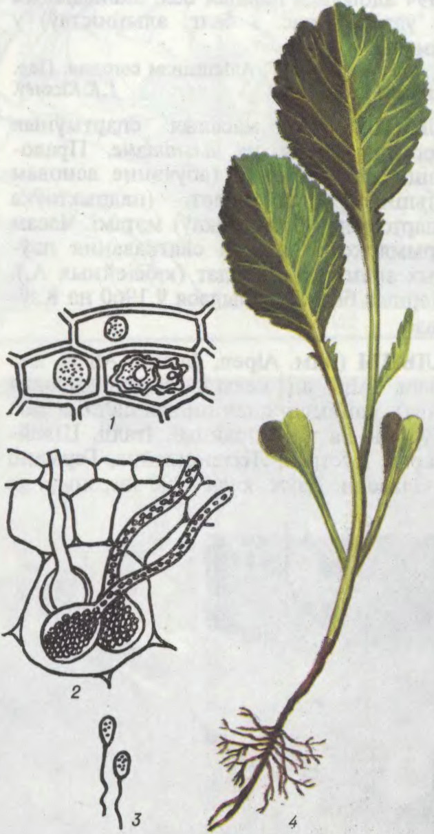 Вегетатыўнае цела (плазмодый) аднаклетачнае. Зоаспарангіі (органы бясполага размнажэння) шарападобныя, з доўгай вывадковай трубкай, адзіночныя або па 2—12 у клетцы. Зааспоры яйцападобныя, з 1 доўгім жгуцікам. Развіваецца ва ўмовах пераўвільгатнення. Пры неспрыяльных умовах зааспоры функцыянуюць як гаметы. Цысты зімуюць у глебе. Расліны заражаюцца пасля з’яўлення семядоляў або першых лісцікаў.