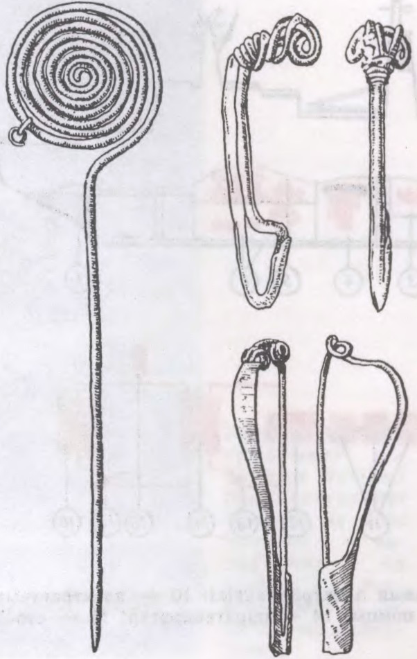 Бронзавыя шпілька і фібулы з бескурганнага могільніка Атвержычы.