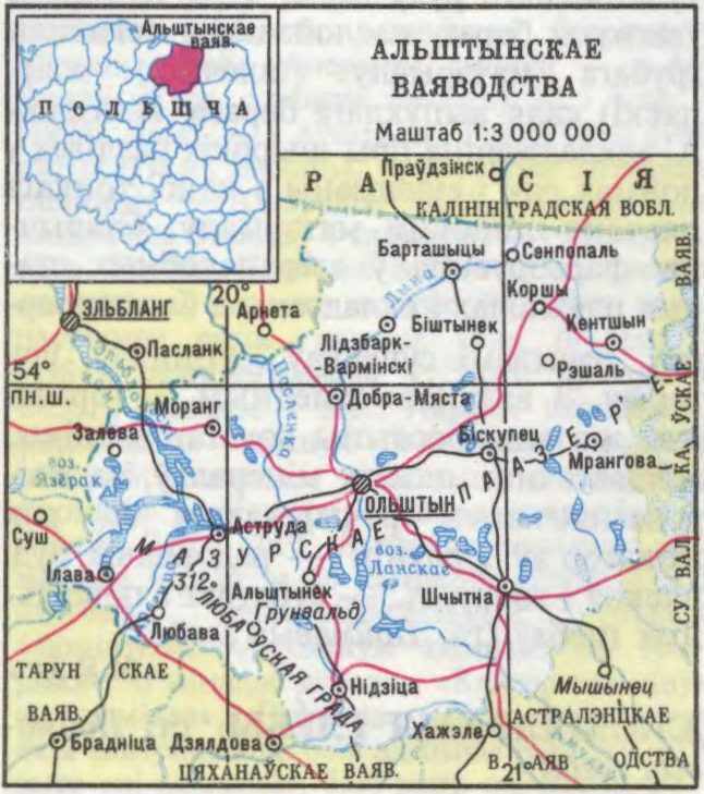 на Пн Польшчы. Пл. 12,3 тыс.км², нас. 738,6 тыс.чал., гарадскога 58% (1987). Адм. цэнтр — г.Ольштын. Найб. гарады: Ольштын, Кентшын, Ілава, Шчытна, Аструда. Большую частку Альштынскага ваяводства займаюць Мазурскае і Ілаўскае паазер’і, на Пн — Старапруская нізіна. У сярэдняй і паўд.-зах. частках марэнныя ўзвышшы (да 312 м над узр. м.). Клімат умераны, марскі. Сярэдняя т-ра студз. -3,5 °C, ліп. 17,5 °C, ападкаў 550 мм за год. Шматлікія рэкі бас. Віслы і Прэголі, найб. азёры — Язёрак, Нара, Ланскае і інш. Глебы дзярнова-падзолістыя. Вядучая галіна эканомікі — сельская гаспадарка. Вырошчваюць кармавыя культуры, жыта, ячмень, авёс, бульбу; гадуюць свіней і буйн. раг. жывёлу, пераважна малочнага кірунку. Прам-сць: маш.-буд., лёгкая, хім., дрэваапр., харчовая. Турызм (азёры, поле Грунвальдскай бітвы 1410).