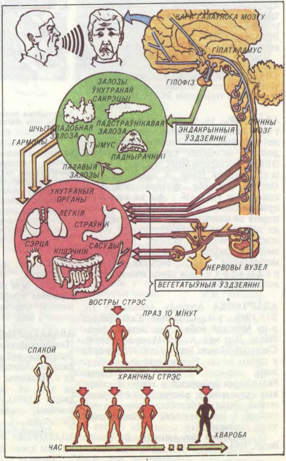 Схема асноўных рэакцый і вынікаў адаптацыйнага сіндрому.