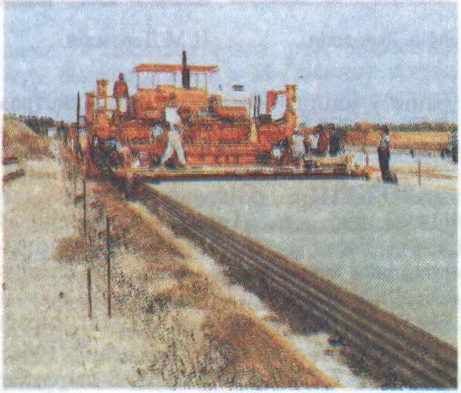 Да арт.Дарожна-будаўнічыя работы Будаўніцтва цэментна-бетоннага дарожнага пакрыцця (укладка сумесі на падрыхтаванае земляное палатно).Да арт.Дарожна-будаўнічыя работы Укладка ахоўнага слоя дарожнага пакрыцця (размеркаванне друзу па слоі бітуму).