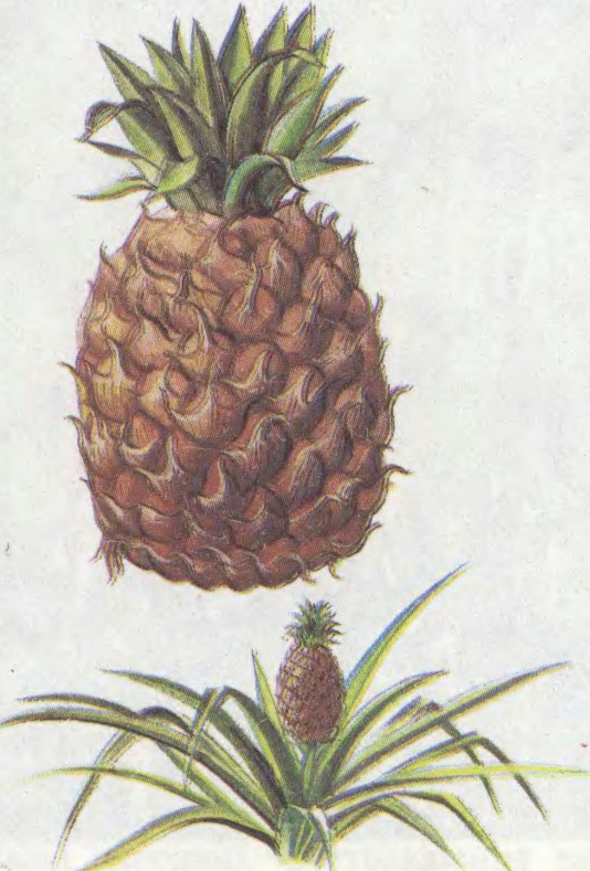 Лісце скурыстае, амаль лінейнае (даўж. да 90 см), па краях калючазубчастае, утварае прыкаранёвую разетку. Кветкі сабраны ў густое суквецце. Цвіце на 2—3-і год. Шышкападобнае залаціста-жоўтае суплоддзе складаецца з многіх ягад (пладоў), важыць 3—5, радзей каля 16 кг. Плады сакаўныя і духмяныя, багатыя цукрам, арган. солямі і вітамінамі, ядомыя. З лісця некаторых ананасаў атрымліваюць валакно. Размнажаюць вегетатыўна — атожылкамі або верхавінкавымі чаранкамі.
