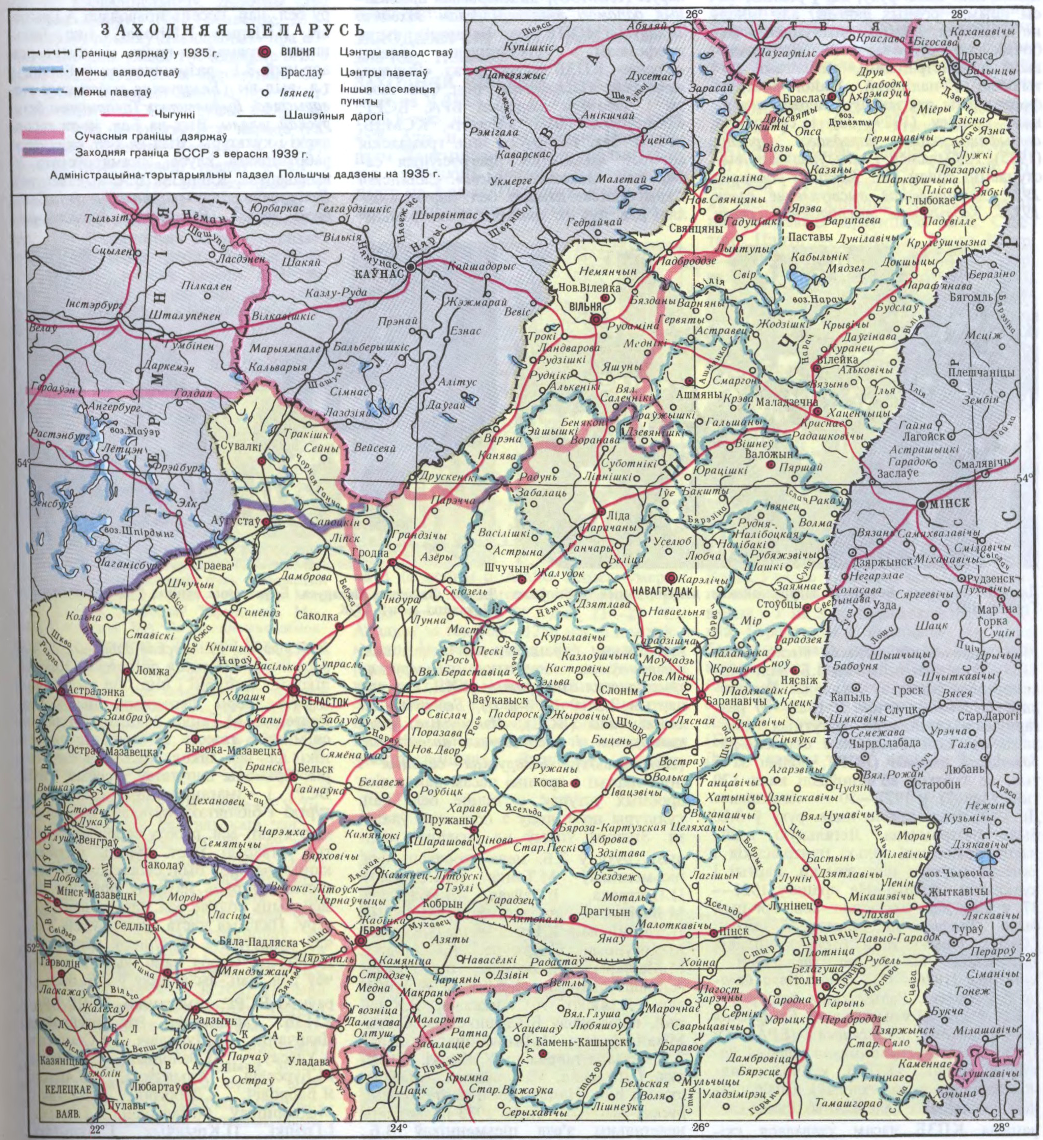 Пасля нападу фаш. Германіі на Польшчу (1.9.1939) Чырв. Армія 17.9.1939 перайшла граніцу Польшчы і ўзяла пад абарону насельніцтва З.Б. і Зах. Украіны. Жыхары З.Б. шчыра сустракалі армію як вызваліцельніцу. Народны сход Заходняй Беларусі 1939 (Беласток, 28—30.10.1939) прыняў Дэкларацыю пра абвяшчэнне Сав. улады і ўз’яднанне З.Б. з БССР. 12.11.1939 сесія Вярхоўнага Савета БССР прыняла законы пра ўз’яднанне З.Б. з БССР. Гэтым было адноўлена нац. адзінства бел. народа (гл.Уз’яднанне Заходняй Беларусі з БССР). Паводле дамоўленасці ўрадаў СССР і Літвы ў кастр. 1939 Віленскі край з г. Вільня перададзены ў склад Літвы, а паводле сав.-польскай дамоўленасці ў вер. 1944 Беластоцкая вобл. і некалькі раёнаў Брэсцкай вобл. перададзены Польшчы. У выніку новага адм.-тэр. падзелу (4.12.1939) на тэр. З.Б. былі ўтвораны 5 абласцей: Баранавіцкая (26 раёнаў), Беластоцкая (24 раёны, з 20.9.1944 Гродзенская вобл., 15 раёнаў), Брэсцкая (18 раёнаў), Вілейская (22 раёны, з 20.9.1944 Маладзечанская вобл.), Пінская (11 раёнаў).