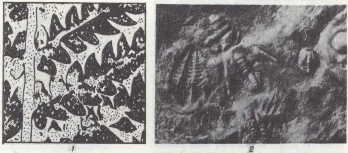 Бываюць афарбаваныя вокісламі жалеза або марганцу, часам пакрыты вуглістай, крамянёвай або жалезістай плёнкай. На Беларусі адбіткі раслін трапляюцца ў адкладах усіх раздзелаў фанеразою ў выглядзе адбіткаў лісця, пустот ад драўніны, шышак, пладоў, злепкаў дзеразападобных, членістасцябловых, папарацепадобных, рызоідаў, стыгмарыяў, адбіткі жывёл — у адкладах ад ардовіку да галацэну; трылабіты, губкі, каралы, ракападобныя, астракоды, малюскі, імшанкі, рыбы і