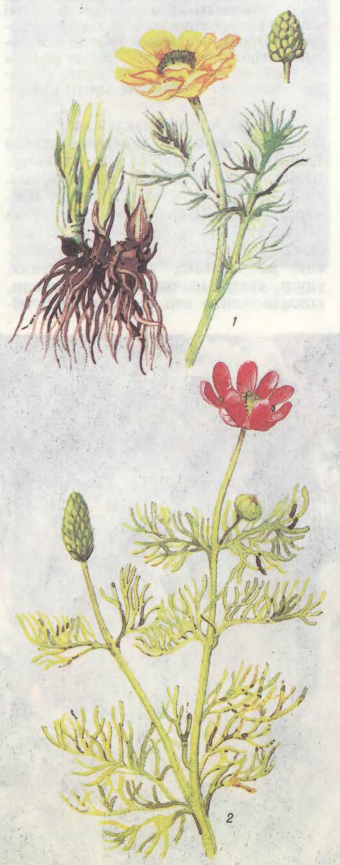 Сцябло прамое або слабагалінастае выш. ад 5 да 40 (зрэдку да 70) см. Лісце рассечана на вузкія сегменты. Кветкі буйныя, адзіночныя, залаціста-жоўтыя або чырвоныя. Плады — авальныя шматарэшкі з прамым або кручкападобным носікам. Выкарыстоўваюць для групавых пасадак і бардзюраў. Прэпараты з адонісу вясновага ўжываюцца пры сардэчнай недастатковасці, неўрозах.