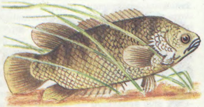 Даўж. да 25 см. Цела буравата-зялёнае, бруха жаўтаватае. Можа жыць без вады каля 8 гадзін. З дапамогай хваста, грудных плаўнікоў і шыпоў шчэлепных накрывак поўзае па сушы. Дыхае атм. паветрам з дапамогай спец. надшчэлепнага органа. У сухі сезон упадае ў спячку, закопваючыся ў глей. Драпежнік. Аб’ект мясц. промыслу, разводзяць у сажалках.