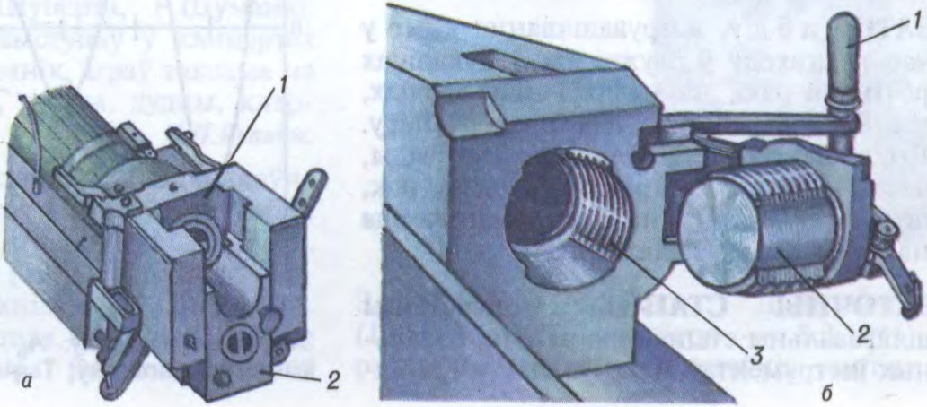 Схема шторава-шчыліннага фатаграфічнага затвора: 1 — барабан; 2 — святлонепранікальныя шторкі; 3 — тасёмкі шторак; 4 — шчыліна; 5 — плёнка; 6 — гільзы шторак.Затворы артылерыйскіх гармат: а — клінавы вертыкальны ў гармат малых калібраў (1 — казённік, 2 — клін); б — поршневы ў гармат сярэдніх і буйных калібраў (1 — рукаятка рамы, 2 — поршань; 3 — затворнае гняздо казённіка).