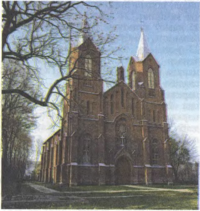 помнік архітэктуры неаготыкі ў г. Міёры Віцебскай вобл. Пабудаваны ў 1907 з цэглы на беразе Мёрскага воз.Манум. 3-нефавы 2-вежавы храм з 5-граннай апсідай, да якой з паўд. боку далучана сакрысція. Фасады будынка з высокім цокалем рытмічна расчлянёны ступеньчатымі контрфорсамі і стральчатымі аконнымі праёмамі. Вось сіметрыі гал. фасада падкрэслена ўваходным парталам і акном-ружай. 3-ярусныя вежы завершаны высокімі шпілямі, раскрапаваны вузкімі нішамі. Вежа-ліхтар завяршае цэнтр. аркатурны шчыт. Нефы перакрыты стральчатымі скляпеннямі.