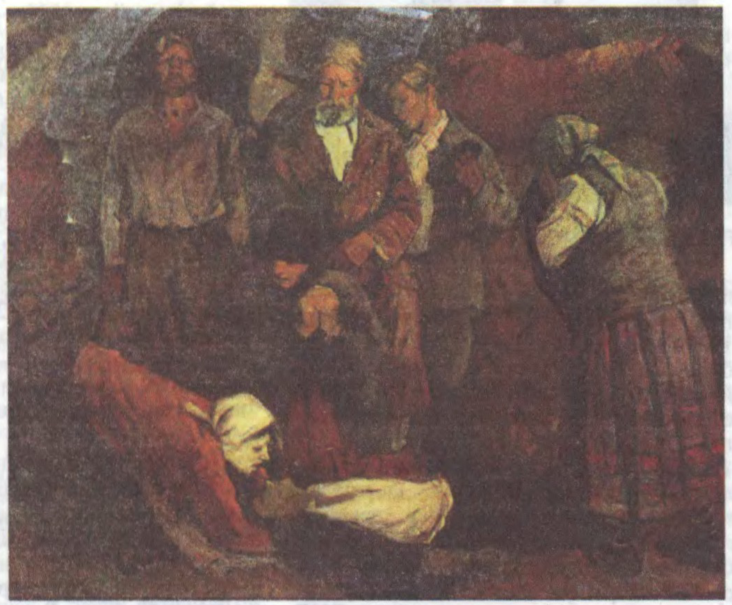 П.Крахалёў. Трактарыста забілі. З трыпціха «Год вялікага пералому». 1967.