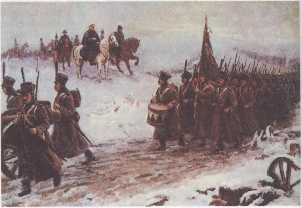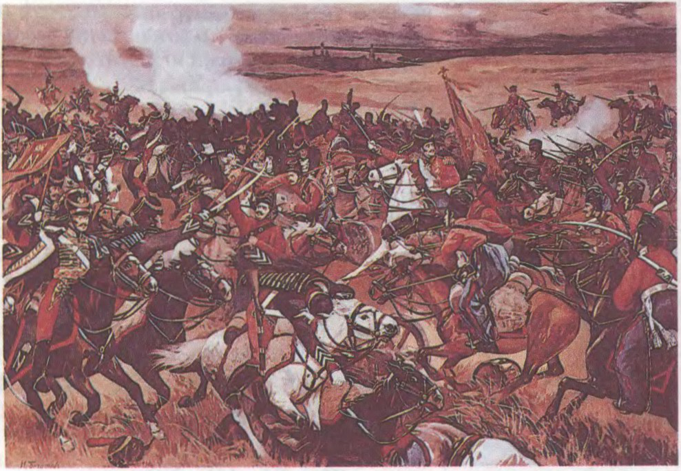 Да арт. Вайна 1812. Атака данскіх казакаў М.І.Платава каля Нясвіжа. Чэрвень 1812. Хромалітаграфія 1912.Да арт. Вайна 1812. Пераправа рускай арміі цераз Нёман у снежні 1812.