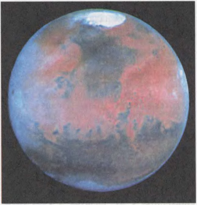 Фатаграфія паверхні планеты Марс, атрыманая пры дапамозе аўтаматычнай станцыі «Вікінг-1» (1976, ЗША).Да арт.«Марс». Аўтаматычная станцыя «Марс-1»: 1 — радыятар сістэмы тэрмарэгулявання; 2 — панэлі сонечных батарэй; 3 — вузканакіраваная антэна; 4 — арбітальны адсек; 5 — рухальная ўстаноўка для карэкцыі; 6 — востранакіраваная антэна.Агульны выгляд планеты Марс (касмічны тэлескоп імя Э.Хабла, 1995, НАСА).