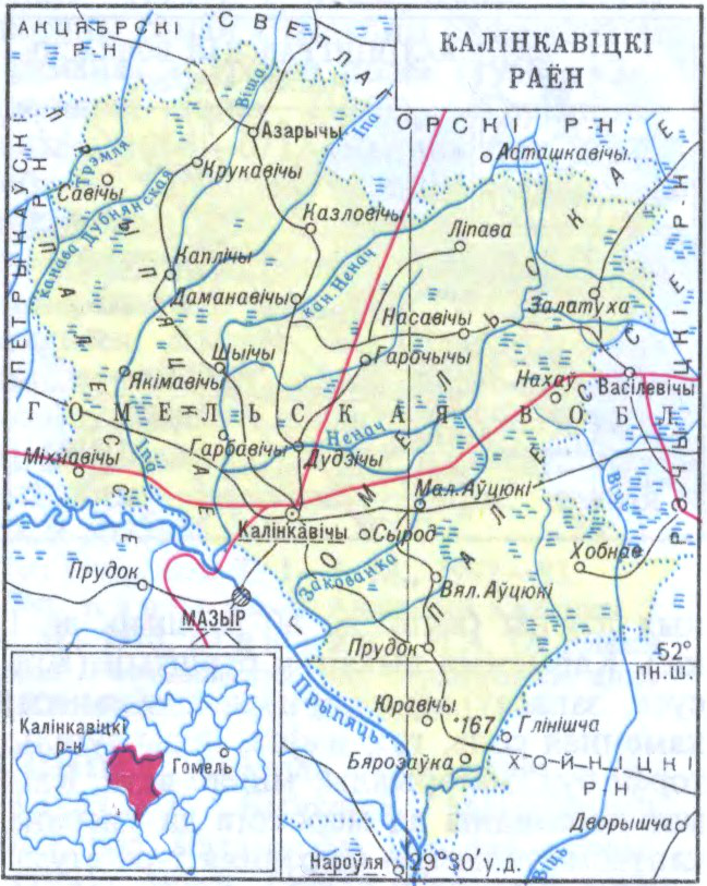 Тэрыторыя раёна размешчана пераважна ў межах Мазырскага Палесся,