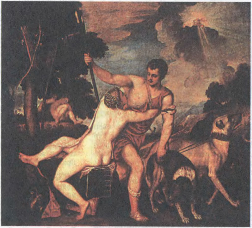 Да арт.Міфалагічны жанр. Г.Вашчанка. Жыцень. 1990.Да арт.Міфалагічны жанр. Тыцыян. Венера і Адоніс. 1553.