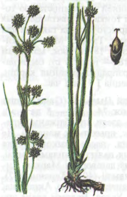 Шматгадовыя травы выш. да 1,5 м з тоўстым паўзучым карэнішчам. Шэра-зялёныя сцёблы пустыя, тоўстыя, густааблісцелыя. Лісце лінейнае, трохграннае, вострапілаватае, рэжучае (адсюль назва). Суквецце — складаная мяцёлка. Каласкі дробныя, бурыя, кветкі без калякветніка. Плод — яйцападобны цёмна-карычневы бліскучы арэшак.