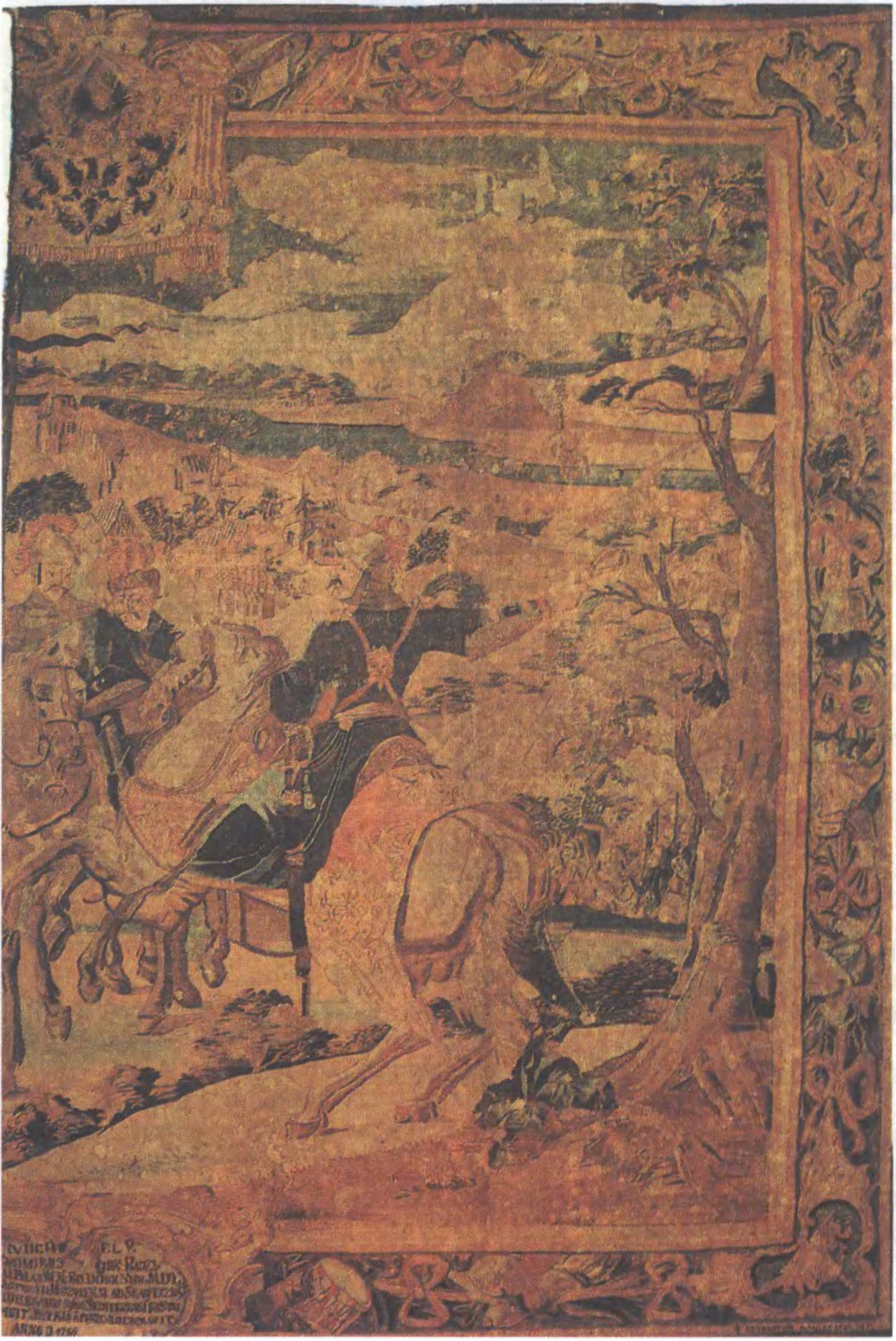 Да арт.Карэліцкія шпалеры. Фрагмент шпалеры «Уціхамірванне бунтаў пад Славечнам». 2-я пал. 18 ст.