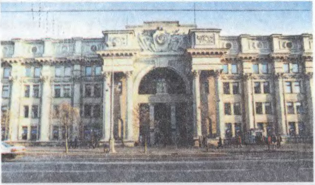 Пабудаваны ў 1949—53 у Мінску (арх. У.Кароль). Складаецца з 2 злучаных паміж сабой аб’ёмаў — асноўнага 4-павярховага П-падобнага ў плане, пастаўленага ўздоўж чырвонай лініі праспекта Скарыны, і прыбудаванага да яго тыльнага фасада (круглы ў плане, у выглядзе ратонды з купалам; дыяметр 30 м), дзе размешчана вял. аперацыйная зала. Гал. фасад будынка, арыентаваны на праспект Скарыны, мае сіметрычную кампазіцыю. Размешчаныя па ўсім фасадзе трохчвэртныя калоны вял. карынфскага ордэра, масіўныя формы цэнтр. аркі ўвахода з апорамі, якія значна выступаюць за межы плана і высокі раскрапаваны атык надаюць будынку манум. характар. У аздабленні фасадаў і інтэр’ераў выкарыстаны прыродны камень, высакаякасная тынкоўка, ляпныя дэталі, вітражы з выявамі помнікаў архітэктуры Беларусі (1980, В.Позняк). Будынак — характэрны прыклад выкарыстання элементаў класічнай спадчыны ў архітэктуры Беларусі 1940—50-х г.