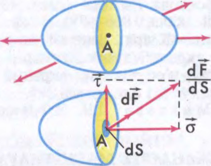 Пры вывучэнні Н.м. ў адвольным пункце цела праз яго праводзяць уяўнае сячэнне, адкідаюць адну ч. цела і дзеянне яе замяняюць унутр. сіламі. Калі на элемент плошчы dS каля пункта A дзейнічае ўнутр.сіла , то адносіны