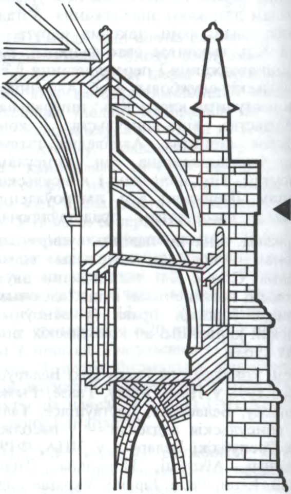 КОНТРФО́РС (франц. contrefort ад contre-force процідзейная сіла) у архітэктуры, папярочная сценка, верт. выступ ці рабро для ўмацавання нясучай канструкцыі збудавання (пераважна сцяны). Прымае на сябе ціск бакавога распору ад скляпення, ціск грунту на падпорныя сценкі і г. д. Вядомы ў еўрап. архітэктуры стылю готыкі з 12 ст. (сабор у Рэймсе, Францыя; і інш.). 3 развіццём каркасна-апорнай канструкцыі збудаванняў, пры якой асн. нагрузка ад перакрыццяў перадавалася з дапамогай сістэмы падпружных арак, нервюр, аркбутанаў на калоны і апорныя часткі сцен, узніклі ўмацаваныя К. Гэта давала магчымасць патанчаць ненагружаныя часткі сцен, павялічыць пралёты і праёмы, прастору інтэр’ераў зрабіць больш свабоднай і дынамічнай. У бел. архітэктуры былі пашыраны ў 16—18 ст. Былі ступеньчатыя, трохвугольныя, пастаяннага ці пераменнага сячэння, вонкавыя ці ўнутраныя і г. д.