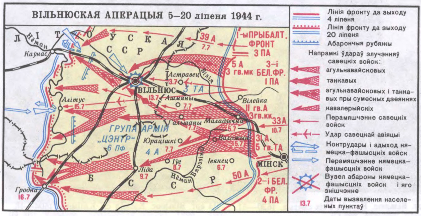 наступальная аперацыя войск 3-га Бел. фронту (ген. арміі І.Д.Чарняхоўскі) 5—20 ліпеня; састаўная частка Беларускай аперацыі 1944 у Вял.Айч. вайну. Удзельнічалі 5-я, 11-я гв., 31, 33, 39, 5-я гв.танк., 1-я паветр. арміі, у складзе апошняй франц. знішчальны авіяполк «Нармандыя», 3-і гв. механіз., 3-і гв.кав. карпусы. Задача аперацыі — без аператыўнай паўзы наступаць у агульным напрамку на Вільнюс, Каўнас, вызваліць Вільнюс і Ліду, фарсіраваць Нёман і захапіць плацдармы на яго беразе. У ходзе аперацыі пры ўзаемадзеянні з бел. і літ. партызанамі вызвалены Валожын, Маладзечна (5 ліп.), Івянец (6 ліп.), Гальшаны, Ашмяны, Юрацішкі (7 ліп.), Іўе (8 ліп.), Ліда (9 ліп.), Вільнюс (13 ліп.), правабярэжная частка Гродна (16 ліп.), створаны спрыяльныя ўмовы для выхаду войск 3-га Бел. фронту да граніц з Усх. Прусіяй. 20 часцям і злучэнням фронту нададзена ганаровае найменне «Віленскіх», 13 — «Маладзечанскіх», 4 — «Лідскіх».