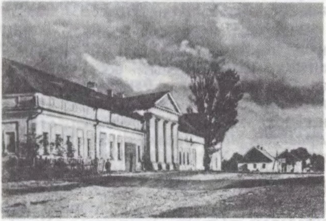 Палац — аднапавярховы прамавугольны ў плане мураваны будынак. Цэнтр.ч. з мансардай на гал. фасадзе была вылучана 8-калонным дарычным порцікам. Сярод памяшканняў вызначаліся карцінная галерэя, археал.кабінет і б-ка. Палац размяшчаўся ў парку рэгулярна-тэраснага тыпу («Малы Версаль») з сістэмай ставоў. Палацава-паркавы комплекс знішчаны ў 1920—30-я г.