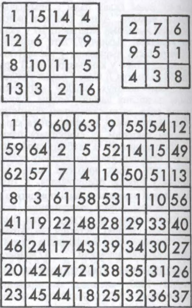 квадратная (n × n) табліца цэлых лікаў ад 1 да n2, у якой сума лікаў уздоўж любога радка, слупка і вял. дыяганалі табліцы ёсць велічыня пастаянная і роўная n(n2 + 1)/2. Лік n наз. парадкам М.к. Даказана, што М.к. можна пабудаваць для любога n>3. Існуюць М.к., якія задавальняюць дадатковыя умовы, напр., М.к. з n=8 можна разбіць на 4 меншыя па 16 лікаў, кожны з якіх таксама М.к. У абагульненым сэнсе пад М.к. разумеюць квадратныя табліцы, запоўненыя не абавязкова паслядоўнымі і першымі натуральнымі лікамі.