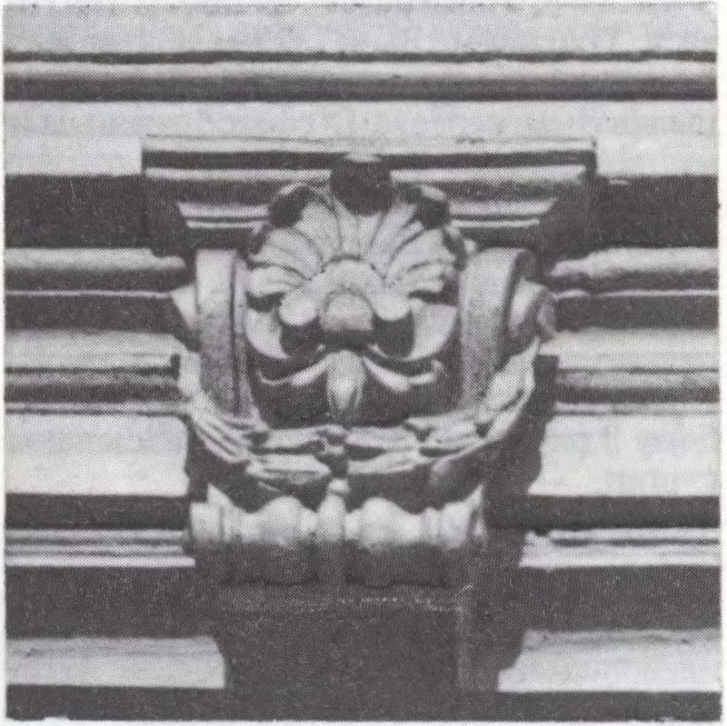Замок у афармленні акна будынка былой мужчынскай гімназіі ў Гомелі.