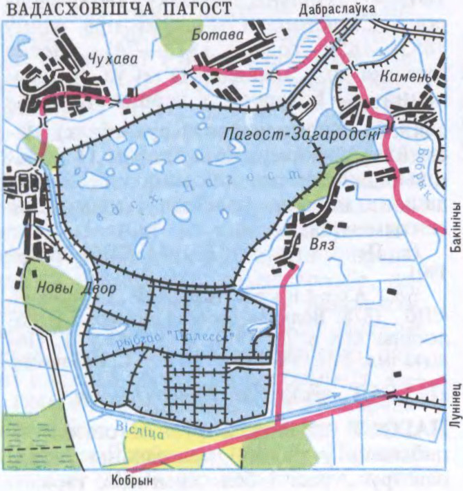 вадасховішча ў Пінскім р-не Брэсцкай вобл., каля в.Пагост-Загародскі. Утворана на месцы большай ч.Пагосцкага возера і прылеглых да яго зямель Пл. 16,2 км2, даўж. 6,1 км, найб.шыр. 4,1 км, найб.глыб. 9,9 м, аб’ём вады 54,48 млн.м³. Былое возера абгароджана дамбай-плацінай даўж. 16,2 км, для рэгулявання аб’ёму вады ў плаціне ёсць вадавыпуск. П. напаўняецца вадой з р. Бобрык 1-ы па падвадным канале (даўж. 8,5 км) пры дапамозе шлюзаў-рэгулятараў. Берагі спадзістыя, дно вадасховішча пясчанае. Замярзае ў сярэдзіне ліст.—пач. студзеня. Таўшчыня лёду 40—60 см. Сярэднегадавая амплітуда вагання ўзроўню 2—3 м. Выкарыстоўваецца для арашэння с.-г. угоддзяў, рыбагадоўлі. Месца для адпачынку, лоўлі рыбы.