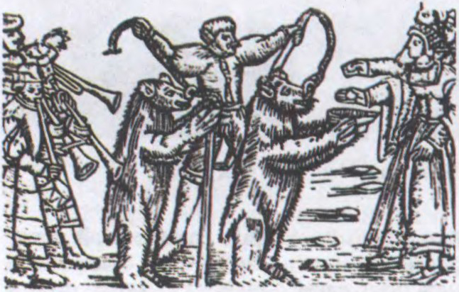 «мядзведжыя камедыі», паказы скамарохаў — дрэсіроўшчыкаў мядзведзяў. Пашыраны ў 16—19 ст. у Расіі, Польшчы. У Беларусі школы дрэсіроўкі мядзведзяў існавалі ў ваколіцах Гродна, Нясвіжа, Мінска, Ракава, на Палессі, найб. папулярная сярод іх была т.зв. «Смаргонская акадэмія». Бел. дрэсіроўшчыкі мядзведзяў упершыню ўпамінаюцца ў пач. 16 ст., калі «мядзведнікаў» абкладалі спец. падаткам. Існаваў асаблівы рэпертуар «М.п.», які складаўся з быт. сцэнак, анекдотаў, жартаў; выкарыстоўваўся спец. рэквізіт (палкі, бубен, шапкі). Паказы суправаджаліся жартамі і прымаўкамі павадыра, часта спалучаліся з выступленнямі скамарохаў-акрабатаў, лялечнікаў і музыкантаў. Разам з «мядзведжым цкаваннем» і «мядзведжай бойкай» уваходзілі ў мядзведжыя гульні. Павадыры з «вучонымі» мядзведзямі з Беларусі хадзілі па кірмашах Расіі, Венгрыі, Германіі, Італіі і Скандынавіі. Апошнія паказы «М.п.» зафіксаваны ў пач. 20 ст.