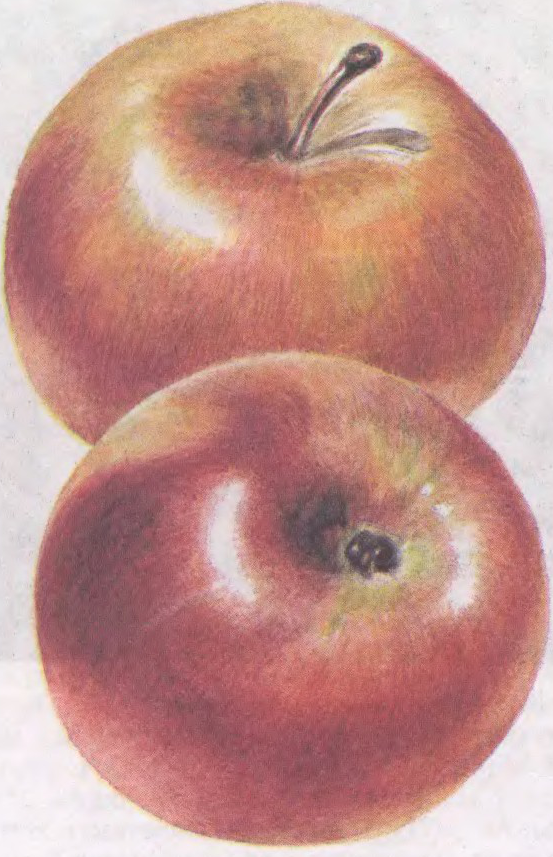 Дрэва моцнарослае, з даволі густой круглаватай кронай. Плоданашэнне на 4—5-ы год пасля пасадкі, дае багатыя ўраджаі. Сорт зімаўстойлівы, успрыімлівы да паршы. Плады пляската-круглаватыя, крыху асіметрычныя, злёгку рабрыстыя, розных памераў (110—170 г). Скурка тонкая, гладкая, бліскучая, з невял. васковым налётам. Асноўная афарбоўка зялёная, покрыўная — размытая малінавая, часам паласатая. Мякаць плода зеленаватая, сакаўная, кісла-салодкая, пахучая. Пры захоўванні не трацяць смакавых якасцяў да сакавіка—красавіка.