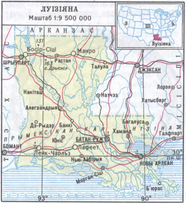 штат на Пд ЗША, на Прымексіканскай нізіне. На Пд абмываецца Мексіканскім залівам. Пл. 125,7 тыс.км2. Нас. 4350,6 тыс.чал. (1996), у т.л. 30,8% негры. Адм. ц. — Батан-Руж, найб. горад Новы Арлеан. Прыморская частка — забалочаная нізіна з азёрамі, на У — даліна і дэльта р. Місісіпі. На ПнЗ рэльеф узгорысты (выш. да 163 м). Клімат субтрапічны, вільготны. Сярэднія месячныя т-ры ад 12 °C у студз.—лютым да 27,5 °C у ліпені. Ападкаў каля 1500 мм за год. Індустр.-агр. штат. Здабыча нафты, прыроднага газу, каменнай солі, серы. Буйная нафтаперапр. і хім.прам-сць (Батан-Руж, Лейк-Чарльз, Новы Арлеан). Развіты алюмініевая, нафтахім. (вытв-сцьсінт. каўчуку, пластмас), дрэваапр., папяровая, харч. (цукр., алейная, апрацоўка трапічных прадуктаў), суднабуд. і суднарамонтная, аўтазборачная, металаапр.прам-сць. У сельскай гаспадарцы пераважае земляробства (больш за 60% даходаў). Асн. культуры: рыс, бавоўнік, цукр. трыснёг, соя, кукуруза, батат. Гадуюць буйн. раг. жывёлу і свіней. Рачное і марское рыбалоўства. Транспарт аўтамабільны, чыгуначны, рачны, марскі.